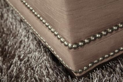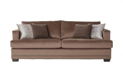 - Deco-modern style in a rich patterned velvet fabric. Accented with lush cut velvet and shimmery gold pillows and nail heads.