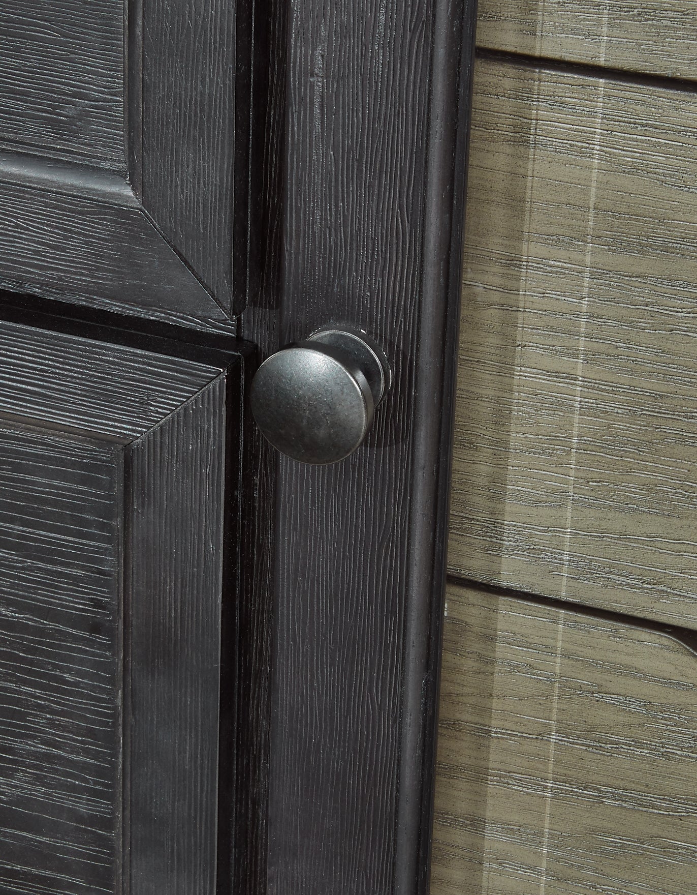 | Details | B989B4: Includes king panel headboard, storage footboard and rails with roll slats, Made with hardwood solids, select oak veneers and engineered wood, Two-tone finish (brushed black and dusty grayish brown wood tone), Headboard with picture frame moulding, Footboard with two deep drawers, Smooth-gliding soft-close drawers with fully finished interiors and dovetail construction, Sleek drawer pulls with black finish, Bed does not require additional foundation/box spring; accommodates most zero clearance adjustable bases with the addition of a bunkie board, Mattress available, sold separately, Assembly required, B989B1: Includes dresser and mirror, Made with hardwood solids, select oak veneers and engineered wood, Two-tone finish (brushed black and dusty grayish brown wood tone), Sleek drawer pulls with black finish, 11 soft-close, smooth-gliding drawers with fully finished interiors and dovetail construction (top drawers felt lined), 5 drawers with brushed black finish; 6 drawers with grayish brown wood tone, 3 drawers located behind each door, Mirror mounts to back of dresser, Assembly required, B989-48: Made with hardwood solids, select oak veneers and engineered wood, Two-tone finish (brushed black and dusty grayish brown wood tone), Sleek drawer pulls with black finish, 5 soft-close, smooth-gliding drawers with fully finished interiors and dovetail construction (top drawers felt lined), 3 pull-out trays (felt lined) and 2 adjustable shelves behind door, B989-92: Made with hardwood solids, select oak veneers and engineered wood, Two-tone finish (brushed black and dusty grayish brown wood tone), Sleek drawer pulls with black finish, 2 soft-close, smooth-gliding drawers with fully finished interiors and dovetail construction, 110V power supply with dual USB charging port, Power cord included; UL listed, | |